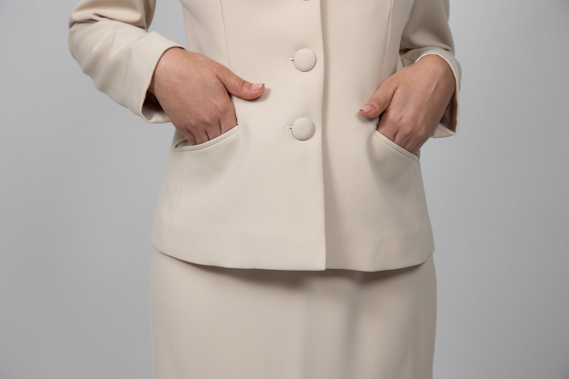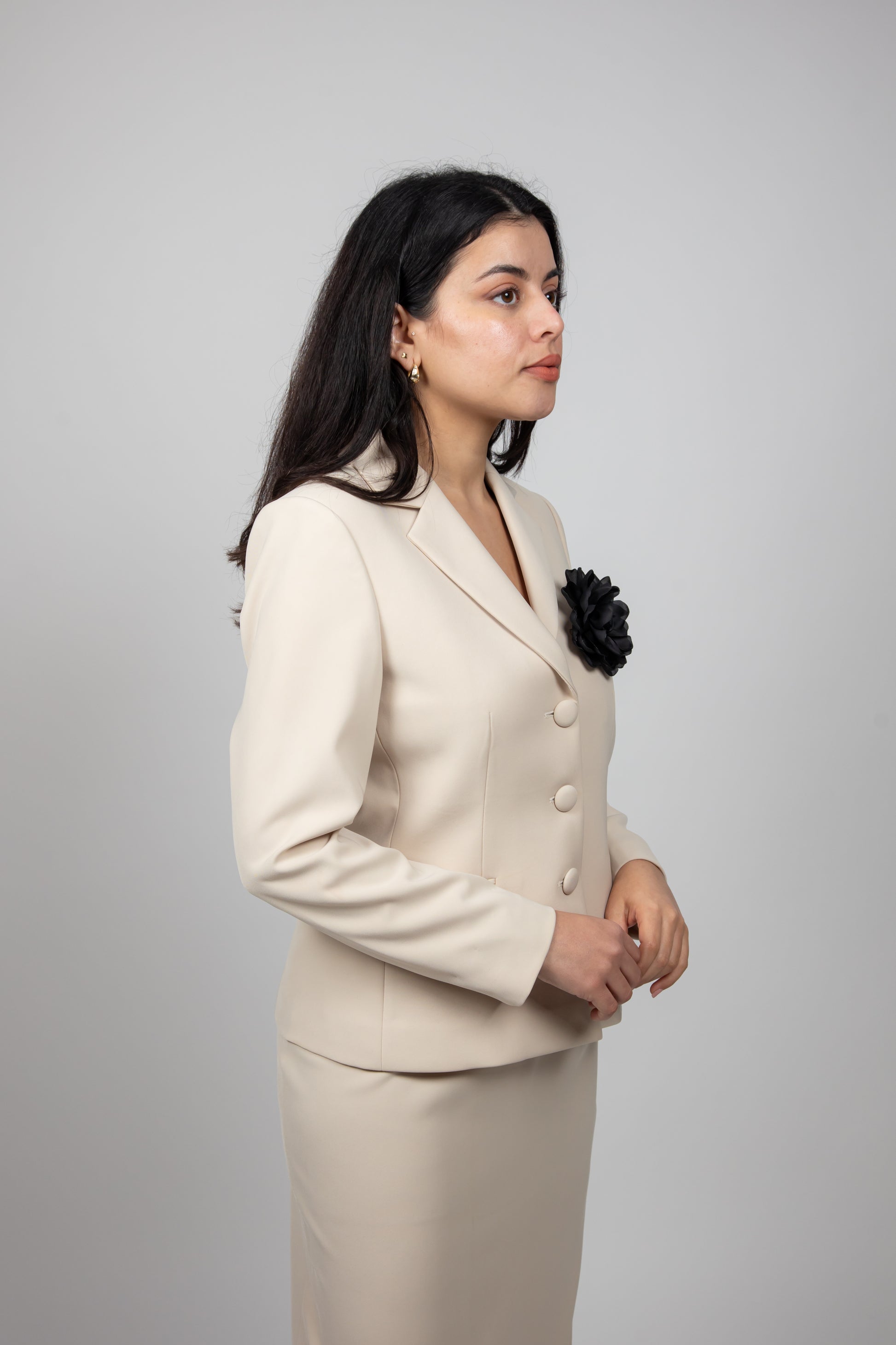 Ivory Peplum Jacket: Tailored to perfection with a flattering peplum waist that enhances the feminine figure